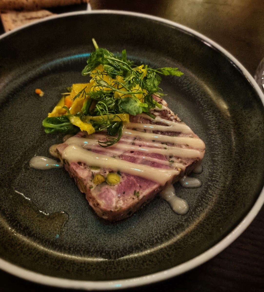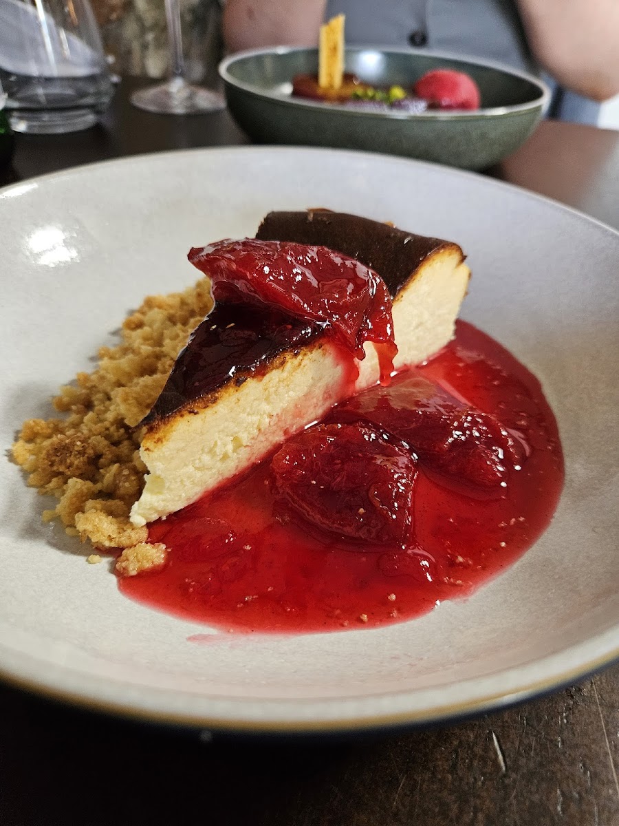 If you're looking for a hearty appetizer, the ham hock starter is a must-try. Served with a rich, flavorful sauce, this dish combines tender, melt-in-your-mouth ham with vibrant garnishes, creating a fantastic balance of tastes and textures. For dessert, don’t miss out on the Basque cheesecake, a sweet, creamy indulgence that adds a perfect finish to your meal.