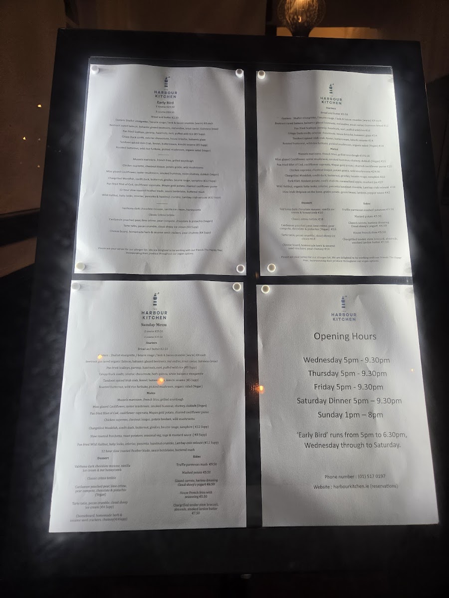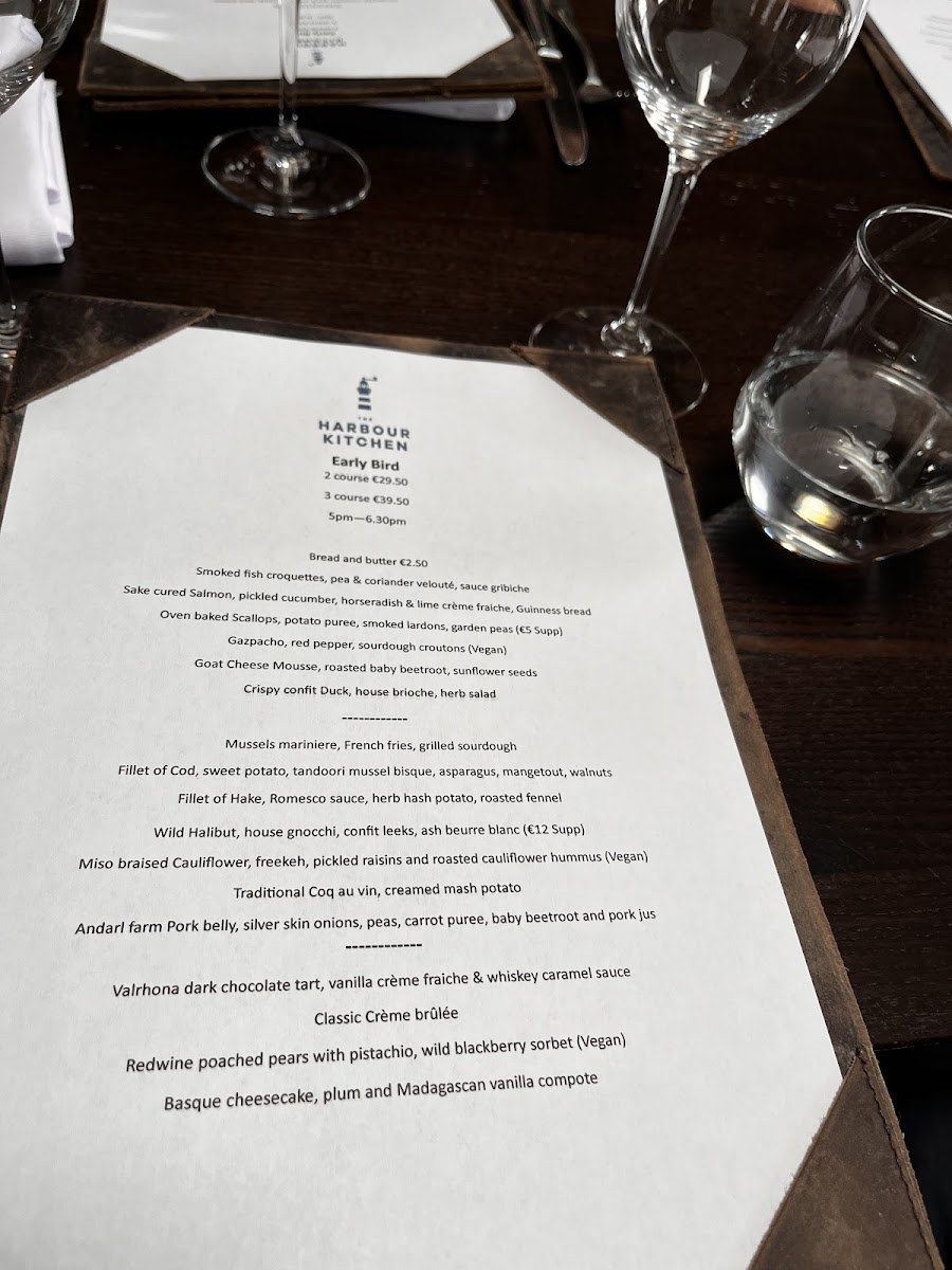The Harbour Kitchen Restaurant offers a menu that effortlessly balances classic Irish flavors with contemporary twists, making each dish a memorable experience. The Ham Hock Starter is a perfect opening, rich and savory, setting the tone for the meal ahead. Seafood lovers will be drawn to the Mussels, cooked to perfection with a depth of flavor that celebrates their freshness, while the pairing with a hint of Guinness adds a uniquely Irish touch. For those with a sweet tooth, the Basque Cheesecake delivers a sublime finale-creamy yet lightly caramelized, it lingers pleasantly on the palate. Every item on the menu reflects careful attention to quality and presentation, with pricing that feels justified by the portion size and craftsmanship. Overall, the selection showcases the restaurant’s dedication to combining familiar comforts with subtle innovation, leaving diners satisfied and eager to return.